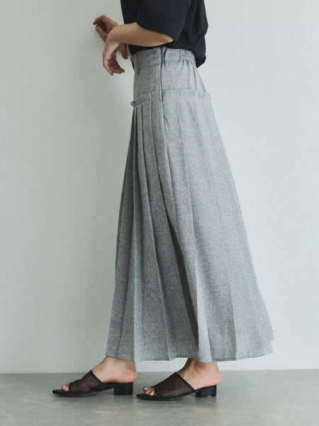 ●POINTミックス調のサマーツィード素材を使用したプリーツ切替えのAラインスカートです。ウエストはベルトループのついたトラウザーライクなデザインになっており、高さの出ないフラットなタイプのプリーツデザインなのでマニッシュな印象です。バックウエスト部分は一部ゴムギャザー仕様になっています。----------------------------------透け感:なし厚さ: 普通伸縮性:なし裏地: ありポケット: なし--------------------------------------------------------------------------------------------------洗濯方法家庭洗濯:液温は30℃を限度とし、手洗いができる。自然乾燥:日蔭の吊り干しがよい。アイロン:底面温度120℃を限度としてアイロン仕上げができる。ドライクリーニング:石油系溶剤による弱いドライクリーニングができる。----------------------------------------------------------------■モデル身長 167cm 着用サイズ M※画像の商品はサンプルとなりますので実際の商品と仕様、加工、サイズが若干異なる場合がございます。※お客様のモニター環境により実際のお色と多少異なる場合がございます。※撮影状況や光の当たり具合により、色合いが異なって見える場合がございます。関連ワード:VICKY ビッキー レディース 新作 大人カジュアル 大人コーデ 2025春夏 2025SS 春夏 夏物 夏服 ポリエステル レーヨン 無地 ゴム プリーツスカート
