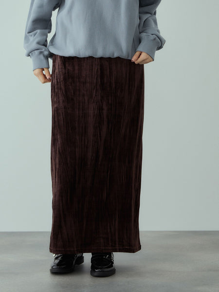 ドレッシーに触れがちなベロア素材にリンクル感を持たせて、デイリーでご着用しやすいようにカジュアルダウンさせたイージースカートです。