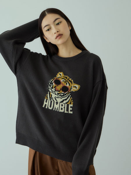 ●POINTアニマルモチーフをPOPにジャカード編みで表現したアメカジ風のニットプルオーバーです。程よく肉感があり、スウェット感覚でご着用いただける一枚です。ブラックはタイガーモチーフにHUMBLE(謙虚)レタード、レッドはドッグモチーフにPAMPER(甘やかす)レタード、ライトブルーはキャットモチーフにBRAVERY(勇敢さ)レタードのグラフィックです。程よくゆとりを持たせたシルエットなので、ユニセックスでのご着用が可能です。----------------------------------透け感:なし厚さ: やや厚い伸縮性:あり裏地: なしポケット: なし--------------------------------------------------------------------------------------------------洗濯方法家庭洗濯:液温は30℃を限度とし、手洗いができる。自然乾燥:日蔭の平干しがよい。アイロン:底面温度120℃を限度としてアイロン仕上げができる。ドライクリーニング:石油系溶剤による弱いドライクリーニングができる。----------------------------------------------------------------■モデル身長 165cm 着用サイズ M※画像の商品はサンプルとなりますので実際の商品と仕様、加工、サイズが若干異なる場合がございます。※お客様のモニター環境により実際のお色と多少異なる場合がございます。※撮影状況や光の当たり具合により、色合いが異なって見える場合がございます。関連ワード:VICKY ビッキー レディース 新作 大人カジュアル 大人コーデ 2025秋冬 2025AW 秋冬 秋物 秋服 ニット アクリル クルーネック 長袖