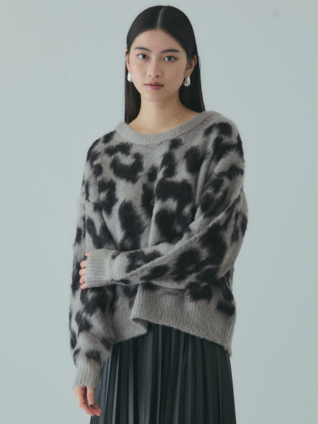 レオパードジャガードシャギーニットプルオーバー