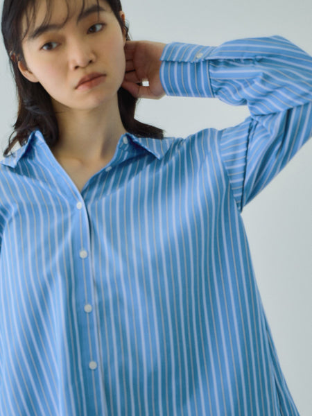 細い糸を高密度に織った、クリーンで滑らかな肌触りが特徴のストライプ生地を使用したマルチウエイでのご着用が可能なデザインブラウスです。