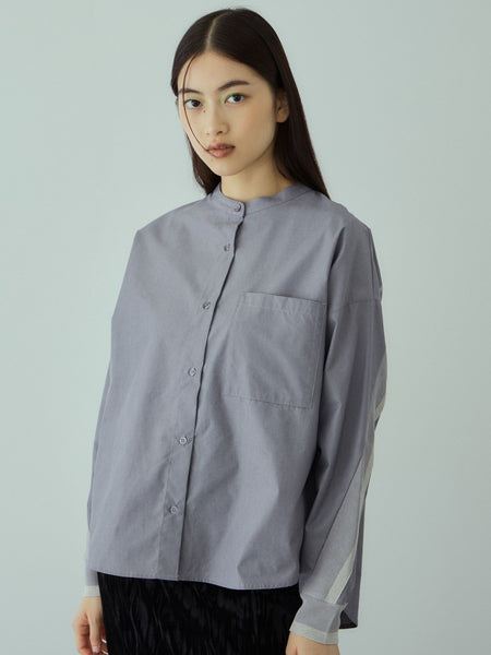 ●POINTポリエステル綿のテキスタイル表面を微かに起毛させ、温みを感じさせる素材を使用しています。袖口〜バックヨークにかけて配色のニットテープがデザインアクセントに。このテープデザインがシャツブルゾンのような印象に導き、ブラウストップスとしてはもちろんですが、オープンボタンでシャツ羽織りとしての着こなしもおすすめです。袖口部分もリブで切り替えているので、暑さを感じる際には袖口をたくし上げやすくなっているのも魅力です。オフ、ライトグレーは無地ボディ、ホワイト系、ブラウン系はストライプボディのカラーバリエーションです。----------------------------------透け感:淡色のみややあり厚さ: 普通伸縮性:なし裏地: なしポケット: あり--------------------------------------------------------------------------------------------------洗濯方法家庭洗濯:液温は40℃を限度とし、手洗いができる。自然乾燥:日蔭の吊り干しがよい。アイロン:底面温度120℃を限度としてアイロン仕上げができる。ドライクリーニング:石油系溶剤による弱いドライクリーニングができる。----------------------------------------------------------------■モデル身長 165cm 着用サイズ M※画像の商品はサンプルとなりますので実際の商品と仕様、加工、サイズが若干異なる場合がございます。※お客様のモニター環境により実際のお色と多少異なる場合がございます。※撮影状況や光の当たり具合により、色合いが異なって見える場合がございます。関連ワード:VICKY ビッキー レディース 新作 大人カジュアル 大人コーデ 2025秋冬 2025AW 秋冬 秋物 秋服 ブラウス コットン ポリエステル レーヨン ナイロン 長袖