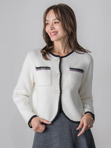 配色カラーのポケットが目を引く、トレンド感たっぷりのカーディガン。シンプルなコーデに羽織るだけで、おしゃれ上級者の印象に。柔らかく軽い素材で、季節の変わり目にもぴったりです。■モデル身長 169cm/着用サイズ M※画像の商品はサンプルとなりますので実際の商品と仕様、加工、サイズが若干異なる場合がございます。※お客様のモニター環境により実際のお色と多少異なる場合がございます。※撮影状況や光の当たり具合により、色合いが異なって見える場合がございます。※商品タグに記載されたサイズはヌードサイズです。実際の商品のサイズは商品情報の実寸をご確認ください。関連ワード:Viaggio Blu ビアッジョブルー レディース キレイめ フェミニン エレガント 華やか 上品 秋 秋服 2025AW AW 2025秋冬