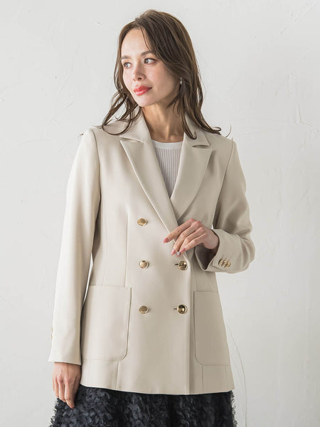 【デザインの特徴】梳毛調素材を使用したオーセンティックなダブルブレストジャケットです。6つボタンと大きめのピークドラペルで、マニッシュなデザインに仕上げています。スタイリッシュな印象のテーラードジャケットは、羽織るだけでワンランクアップした装いになります。----------------------------------------------------------------洗濯方法家庭洗濯:家庭での洗濯禁止。アイロン:底面温度120℃を限度としてアイロン仕上げができる。ドライクリーニング:石油系溶剤による弱いドライクリーニングができる。----------------------------------------------------------------■モデル身長 169cm/着用サイズ M※画像の商品はサンプルとなりますので実際の商品と仕様、加工、サイズが若干異なる場合がございます。※お客様のモニター環境により実際のお色と多少異なる場合がございます。※撮影状況や光の当たり具合により、色合いが異なって見える場合がございます。※商品タグに記載されたサイズはヌードサイズです。実際の商品のサイズは商品情報の実寸をご確認ください。関連ワード:Viaggio Blu ビアッジョブルー レディース 新作 大人カジュアル 大人コーデ レディース キレイめ フェミニン エレガント 華やか 上品 春 夏 2026春夏 2026SS 春服 夏服