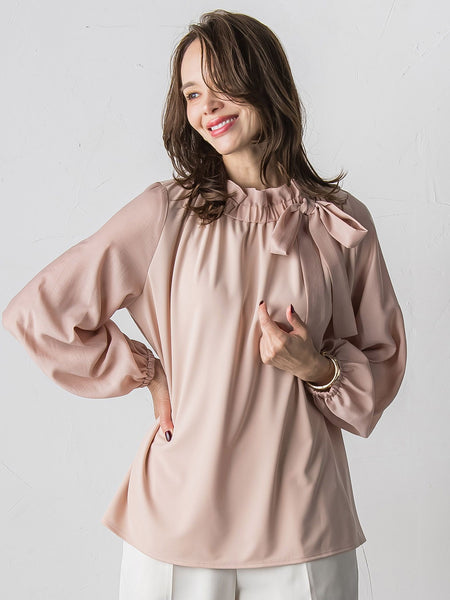 袖とリボンは程よい透け感と光沢・表情感のあるブラウス生地を使用。