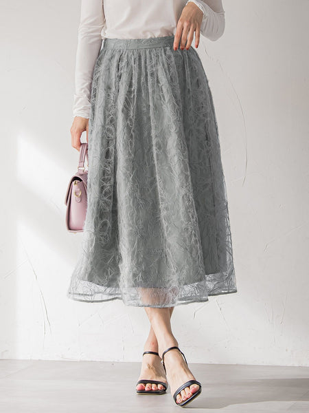 【デザインの特徴】シーズンムード漂う意匠素材のフレアースカート。繊細なフェザーヤーンの表情感が魅力的です。ドラマティックなフレアーシルエットに仕上げています。バックウエストはゴム仕様で心地よい着用感です。同素材を使用したトップスとのセットアップスタイルもおすすめです。【素材の特徴】繊細なレース生地にへアリーなフェザーヤーンでフラワー刺繍を施したオリジナルの意匠素材を使用。----------------------------------------------------------------洗濯方法家庭洗濯:液温は30℃を限度とし、洗濯機で非常に弱い洗濯ができる。自然乾燥:日陰の吊り干しがよい。アイロン:底面温度120℃を限度としてアイロン仕上げができる。ドライクリーニング:石油系溶剤による弱いドライクリーニングができる。----------------------------------------------------------------■モデル身長 169cm/着用サイズ M※画像の商品はサンプルとなりますので実際の商品と仕様、加工、サイズが若干異なる場合がございます。※お客様のモニター環境により実際のお色と多少異なる場合がございます。※撮影状況や光の当たり具合により、色合いが異なって見える場合がございます。※商品タグに記載されたサイズはヌードサイズです。実際の商品のサイズは商品情報の実寸をご確認ください。関連ワード:Viaggio Blu ビアッジョブルー レディース 新作 大人カジュアル 大人コーデ レディース キレイめ フェミニン エレガント 華やか 上品 秋 秋服 2025AW AW 2025秋冬
