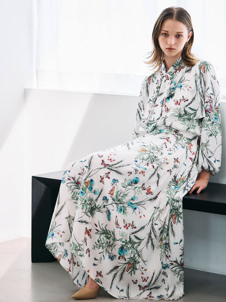 - バタフライプリントスカート≪洗濯機で洗える≫