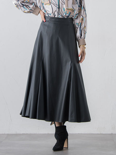 ウエストからヒップまではすっきりとしたサイズ感、裾に向かって広がるマーメイドラインがフェミニンな1着。