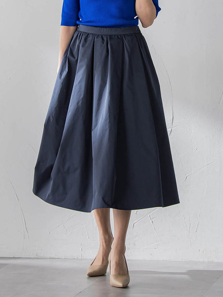 【デザインの特徴】上品なタフタ素材のタックフレアースカート。バックゴムデザインで心地よい着用感です。ドラマティックなフレアーシルエットですが、柔らかな光沢素材を使用しているので落ち着いた印象で着用していただけます。あらゆるトップスと相性が良い汎用性に優れた華やかな一着です。【素材の特徴】細番手のハイカウント糸によるなめらかな表面感が魅力のメモリー風ツイルタフタです。高密度で織り上げることで先染めの形状記憶素材に近い素材感を出しています。----------------------------------------------------------------洗濯方法家庭洗濯:液温は30℃を限度とし、洗濯機で非常に弱い洗濯ができる。自然乾燥:日陰の吊り干しがよい。アイロン:底面温度160℃を限度としてアイロン仕上げができる。ドライクリーニング:石油系溶剤による弱いドライクリーニングができる。----------------------------------------------------------------※画像の商品はサンプルとなりますので実際の商品と仕様、加工、サイズが若干異なる場合がございます。※お客様のモニター環境により実際のお色と多少異なる場合がございます。※撮影状況や光の当たり具合により、色合いが異なって見える場合がございます。※商品タグに記載されたサイズはヌードサイズです。実際の商品のサイズは商品情報の実寸をご確認ください。関連ワード:Viaggio Blu ビアッジョブルー レディース 新作 大人カジュアル 大人コーデ レディース キレイめ フェミニン エレガント 華やか 上品 秋 秋服 2025AW AW 2025秋冬