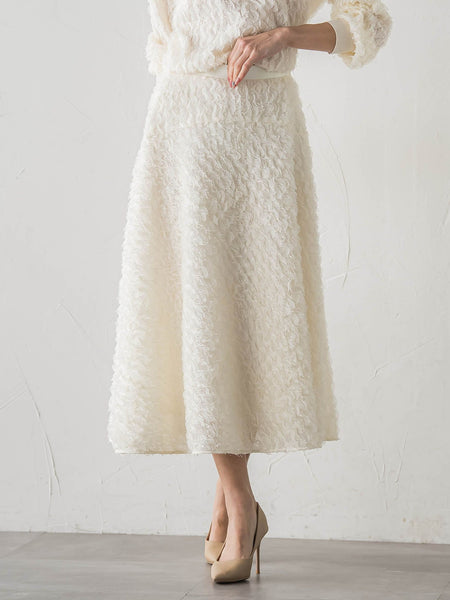 【デザインの特徴】ヒップにカービーな切り替えを入れて、きれいなフレアーラインを出したスカートです。ウエスト回りはすっきりめに仕上げ、ヒップ下はダイナミックにフレアーを出したシルエットです。チュールに立体的な刺繍が施されたエアリーで華やかな意匠素材を使用しています。後ろウエストはゴム仕様にし、ストレスフリーな着心地も実現。同素材のブラウスや、ニットジップカーディガンとセットアップで着ていただくと、より華やかな装いをしていただけます。【素材の特徴】テープチュールの刺繍と、シャギーを組み合わせることで、華やかさを際立たせた意匠素材です。華やかで立体的ながらもエアリーなので、シーズンレスで着ていただけます。----------------------------------------------------------------洗濯方法家庭洗濯:家庭での洗濯禁止。アイロン:底面温度160℃を限度としてアイロン仕上げができる。ドライクリーニング:石油系溶剤による弱いドライクリーニングができる。----------------------------------------------------------------■モデル身長 169cm/着用サイズ M※画像の商品はサンプルとなりますので実際の商品と仕様、加工、サイズが若干異なる場合がございます。※お客様のモニター環境により実際のお色と多少異なる場合がございます。※撮影状況や光の当たり具合により、色合いが異なって見える場合がございます。※商品タグに記載されたサイズはヌードサイズです。実際の商品のサイズは商品情報の実寸をご確認ください。関連ワード:Viaggio Blu ビアッジョブルー レディース 新作 大人カジュアル 大人コーデ レディース キレイめ フェミニン エレガント 華やか 上品 秋 秋服 2025AW AW 2025秋冬