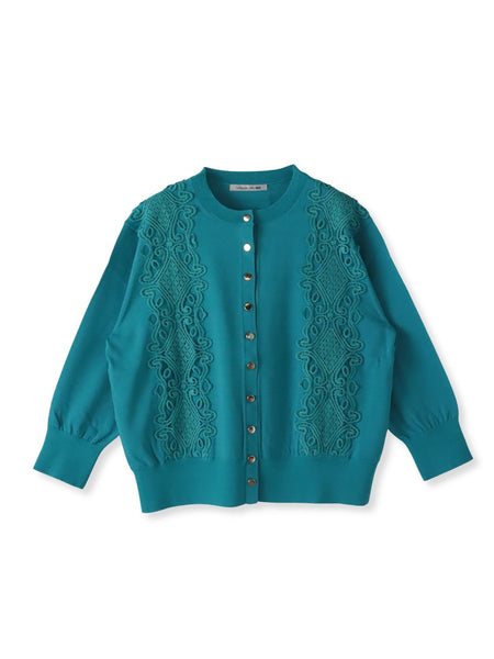 【デザインの特徴】前身頃を繊細なレース刺繍で切り替えた、華やかカーディガン。シンプルなコーデに合わせるだけで、ぐっと女性らしい印象に仕上がります。羽織としても、ボタンを閉じてトップス風にも着られる便利な一枚です。----------------------------------------------------------------洗濯方法家庭洗濯:液温は30℃を限度とし、手洗いができる。自然乾燥:日陰の平干しがよい。アイロン:底面温度120℃を限度としてアイロン仕上げができる。ドライクリーニング:石油系溶剤による弱いドライクリーニングができる。----------------------------------------------------------------※画像の商品はサンプルとなりますので実際の商品と仕様、加工、サイズが若干異なる場合がございます。※お客様のモニター環境により実際のお色と多少異なる場合がございます。※撮影状況や光の当たり具合により、色合いが異なって見える場合がございます。※商品タグに記載されたサイズはヌードサイズです。実際の商品のサイズは商品情報の実寸をご確認ください。関連ワード:Viaggio Blu ビアッジョブルー レディース 新作 大人カジュアル 大人コーデ レディース キレイめ フェミニン エレガント 華やか 上品 秋 秋服 2025AW AW 2025秋冬