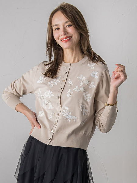 【デザインの特徴】華やかなボタニカルモチーフの刺繍がポイントのクルーネックカーディガンです。テープ刺繍と手付けのパールビーズのモチーフ加え、繊細ながら装飾性と立体感のある1着に。刺繍糸を数色使用することで立体感のある印象に仕上げています。【素材の特徴】滑らかな質感が魅力的なレーヨンポリエステル素材を使用。美しい目づらとストレッチ性が特徴的です。----------------------------------------------------------------洗濯方法家庭洗濯:液温は30℃を限度とし、手洗いができる。自然乾燥:日陰の平干しがよい。アイロン:底面温度160℃を限度としてアイロン仕上げができる。ドライクリーニング:石油系溶剤による弱いドライクリーニングができる。----------------------------------------------------------------■モデル身長 169cm/着用サイズ M※画像の商品はサンプルとなりますので実際の商品と仕様、加工、サイズが若干異なる場合がございます。※お客様のモニター環境により実際のお色と多少異なる場合がございます。※撮影状況や光の当たり具合により、色合いが異なって見える場合がございます。※商品タグに記載されたサイズはヌードサイズです。実際の商品のサイズは商品情報の実寸をご確認ください。関連ワード:Viaggio Blu ビアッジョブルー レディース 新作 大人カジュアル 大人コーデ レディース キレイめ フェミニン エレガント 華やか 上品 秋 秋服 2025AW AW 2025秋冬