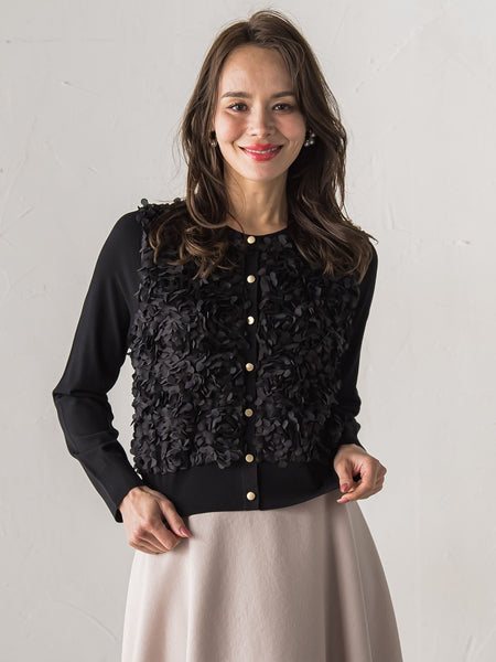 花びらのモチーフを敷き詰めた華やかなドッキングカーディガン。
