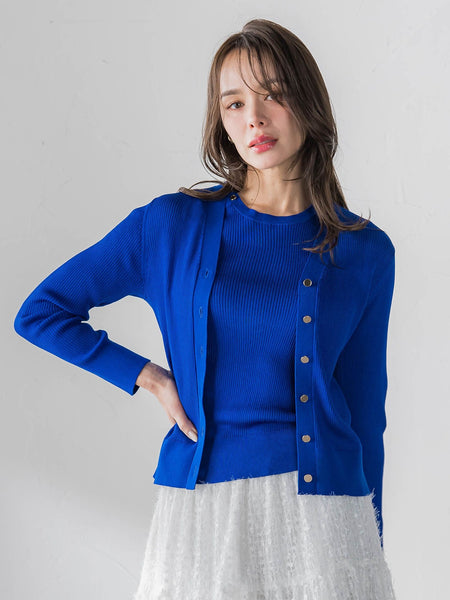 【デザインの特徴】上品な素材感が魅力的なVネックリブカーディガン。心地よい着用感のリブ組織で編み立て、メタルボタンをアクセントに仕上げています。ボディラインを拾い過ぎない程良いサイズ感で仕上げています。一枚でも華やかですが、同素材のプルオーバーとアンサンブルとして着用するのもおすすめです。【素材の特徴】ソフトで軽く、清涼感と光沢が綺麗な糸で編み上げました。ストレッチ性と極上の肌触りが魅力的な素材です。----------------------------------------------------------------洗濯方法家庭洗濯:液温は30℃を限度とし、手洗いができる。自然乾燥:日陰の平干しがよい。アイロン:底面温度120℃を限度としてアイロン仕上げができる。ドライクリーニング:石油系溶剤による弱いドライクリーニングができる。----------------------------------------------------------------■モデル身長 169cm/着用サイズ M※画像の商品はサンプルとなりますので実際の商品と仕様、加工、サイズが若干異なる場合がございます。※お客様のモニター環境により実際のお色と多少異なる場合がございます。※撮影状況や光の当たり具合により、色合いが異なって見える場合がございます。※商品タグに記載されたサイズはヌードサイズです。実際の商品のサイズは商品情報の実寸をご確認ください。関連ワード:Viaggio Blu ビアッジョブルー レディース 新作 大人カジュアル 大人コーデ レディース キレイめ フェミニン エレガント 華やか 上品 秋 秋服 2025AW AW 2025秋冬