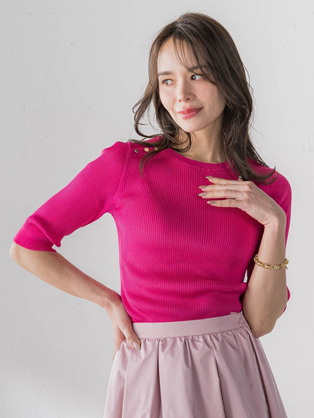 【デザインの特徴】上品な素材感が魅力的なリブプルオーバー。心地よい着用感のリブ組織で編み立て、肩のメタルボタンデザインがポイントです。一枚でも華やかですが、同素材のカーディガンとアンサンブルとして着用するのもおすすめです。【素材の特徴】ソフトで軽く、清涼感と光沢が綺麗な糸で編み上げました。ストレッチ性と極上の肌触りが魅力的な素材です。----------------------------------------------------------------洗濯方法家庭洗濯:液温は30℃を限度とし、手洗いができる。自然乾燥:日陰の平干しがよい。アイロン:底面温度120℃を限度としてアイロン仕上げができる。ドライクリーニング:石油系溶剤による弱いドライクリーニングができる。----------------------------------------------------------------■モデル身長 169cm/着用サイズ M※画像の商品はサンプルとなりますので実際の商品と仕様、加工、サイズが若干異なる場合がございます。※お客様のモニター環境により実際のお色と多少異なる場合がございます。※撮影状況や光の当たり具合により、色合いが異なって見える場合がございます。※商品タグに記載されたサイズはヌードサイズです。実際の商品のサイズは商品情報の実寸をご確認ください。関連ワード:Viaggio Blu ビアッジョブルー レディース 新作 大人カジュアル 大人コーデ レディース キレイめ フェミニン エレガント 華やか 上品 秋 秋服 2025AW AW 2025秋冬
