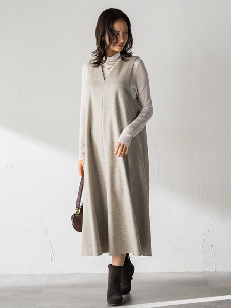 【デザイン】ほんのりとラメを織り込んだツイード素材が、冬の装いに上質なきらめきを添えるジャンパースカートワンピース。Vネックの抜け感と、裾に向かって優雅に広がるフレアラインが、シンプルながらもエレガントな印象に仕上げます。インナーを変えるだけで表情が変わり、ニットやブラウスとのレイヤードもおすすめ。体のラインを拾いすぎず、ストンと落ちるシルエットで、スタイルアップも叶うアイテムです。【素材】タテ糸にレーヨンを巻き付けたウール糸を使用し、ほのかにラメを織り込んだツイード素材。ウールらしい暖かみと立体感のある表情に、レーヨンの上品な光沢とラメのさりげない華やかさをプラスすることで、大人の女性に似合う洗練された風合いに仕上げています。カジュアルな印象になりがちなホームスパンを、モダンかつエレガントに昇華した素材です。【スタイリング】タートルネックやボウタイブラウスでクラシカルに、ライトニット合わせで抜け感のあるデイリーコーデにも。レザーブーツやヒールとの合わせで女性らしく、フラットシューズでカジュアルダウンも◎。ジャケットとの組み合わせでお仕事シーンにも活躍します。【仕様】裏地あり/ポケットなし----------------------------------------------------------------洗濯方法家庭洗濯:家庭での洗濯禁止。アイロン:底面温度120℃を限度としてアイロン仕上げができる。ドライクリーニング:石油系溶剤による弱いドライクリーニングができる。----------------------------------------------------------------■モデル身長 165cm/着用サイズ 9号※商品タグに記載されたサイズはヌードサイズです。実際の商品のサイズは商品情報の実寸をご確認ください。※画像の商品はサンプルとなりますので実際の商品と仕様、加工、サイズが若干異なる場合がございます。※お客様のモニター環境により実際のお色と多少異なる場合がございます。※撮影状況や光の当たり具合により、色合いが異なって見える場合がございます。関連ワード:LAUTREAMONT ロートレアモン レディース きれいめカジュアル 大人カジュアル ナチュラル きれいめ キレイめ 上品 シンプル ベーシック 通勤スタイル オフィスカジュアル キャリア オフィススタイル 新作 2025秋冬 2025AW 秋冬 秋物 秋服