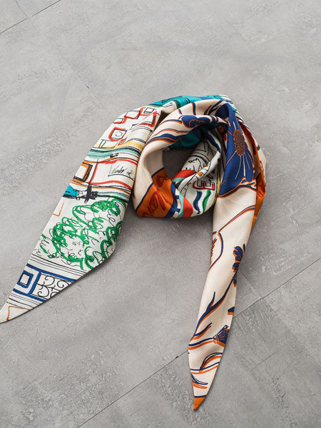 2柄がミックスされたダイヤ型スカーフ。manipuriの人気の柄が組み合わさって巻いた時に違う柄が見えるおしゃれでさらに華やかさのあるアイテムです。細長い形状なのでスクエア状のスカーフに比べ折りたたむ手間がなく巻きやすいアイテムです。