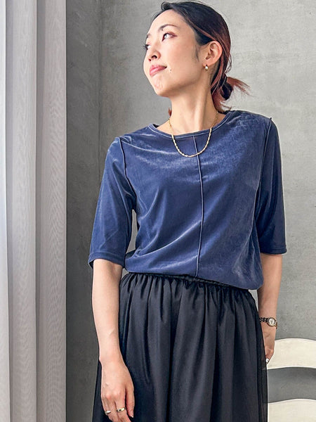 柔らかなベロア素材にほんのりシアー感をプラスした、WEB限定のシアーベロアカットソー。