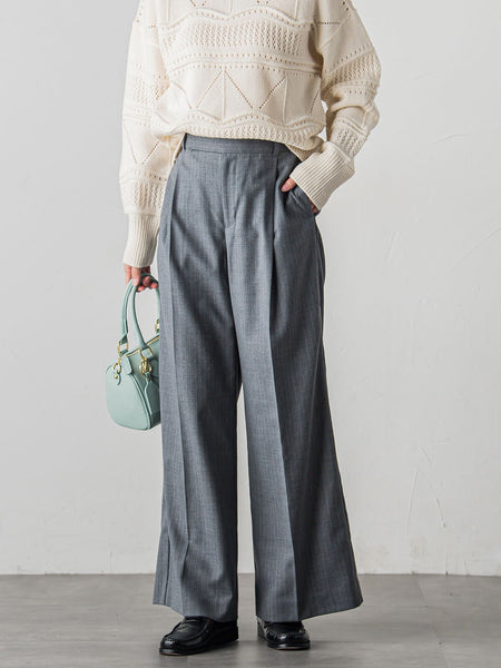 【デザイン】ウール素材の大人のラインパンツ。ワンタックのワイドシルエットで広がりすぎず、キレイ目に穿いていただけます。サイドに同系色のサテン素材を細ラインで切り替え、カジュアル見えしすぎず上品な印象で着ていただけます。裏地付きなので滑りもよく、チクチク感も気にせず穿いていただけます。----------------------------------洗濯方法家庭洗濯:家庭での洗濯禁止アイロン:底面温度110℃を限度としてアイロン仕上げができる。ドライクリーニング:石油系溶剤による弱いドライクリーニングができる。----------------------------------■モデル身長 165cm/着用サイズ M※商品タグに記載されたサイズはヌードサイズです。実際の商品のサイズは商品情報の実寸をご確認ください。※画像の商品はサンプルとなりますので実際の商品と仕様、加工、サイズが若干異なる場合がございます。※お客様のモニター環境により実際のお色と多少異なる場合がございます。※撮影状況や光の当たり具合により、色合いが異なって見える場合がございます。関連ワード:LAUTREAMONT ロートレアモン レディース 大人カジュアル きれいめカジュアル ナチュラル きれいめ キレイめ 上品 シンプル ベーシック 通勤スタイル オフィスカジュアル キャリア オフィススタイル 2024秋冬 冬 冬服 ロングパンツ ワイドルーズ 10分丈 ポリエステル ウール ラインパンツ