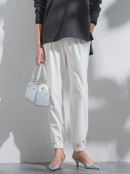 程よい肉感の裏起毛TR素材のあたたかパンツ。