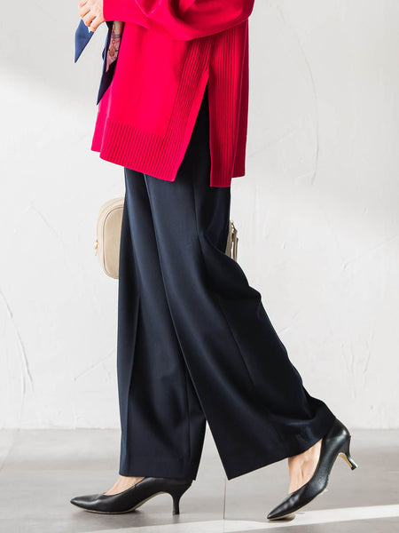 【デザイン】リラックス感がありながらも、落ち感のあるシルエットで大人っぽくはけるワイドパンツ。ウエストはゴム仕様に加え、ドローストリング付きでサイズ調整もしやすく、ストレスフリーな穿き心地です。ワイドすぎない分量感で、トップスを選ばずバランスよく着こなせる一本。ポケット付きで、デイリー使いにも便利なデザインです。【素材】2WAYストレッチのフラノ素材を使用。表裏の両面に起毛加工を施しており、空気を含んだようなやわらかな温かみが魅力です。しっかり伸びて戻りの良いキックバック性があり、長時間の着用でも型崩れしにくく快適。きれいめ見えしながら、防寒性も兼ね備えた秋冬に頼れる素材感です。【仕様】・裏地あり・ウエストゴム+ドローストリング・ポケットあり【スタイリング】ニットやカットソーはもちろん、ブラウスやジャケットと合わせれば通勤にも対応。足元はパンプスで上品に、ブーツで季節感を出すのもおすすめです。きれいめからカジュアルまで幅広く活躍する、冬の定番ワイドパンツです。----------------------------------------------------------------洗濯方法家庭洗濯:液温は30℃を限度とし、洗濯機で非常に弱い洗濯ができる。自然乾燥:日陰の吊り干しがよい。アイロン:底面温度120℃を限度としてアイロン仕上げができる。ドライクリーニング:石油系溶剤による弱いドライクリーニングができる。----------------------------------------------------------------■モデル身長 165cm/着用サイズ 9号※商品タグに記載されたサイズはヌードサイズです。実際の商品のサイズは商品情報の実寸をご確認ください。※画像の商品はサンプルとなりますので実際の商品と仕様、加工、サイズが若干異なる場合がございます。※お客様のモニター環境により実際のお色と多少異なる場合がございます。※撮影状況や光の当たり具合により、色合いが異なって見える場合がございます。関連ワード:LAUTREAMONT ロートレアモン レディース きれいめカジュアル 大人カジュアル ナチュラル きれいめ キレイめ 上品 シンプル ベーシック 通勤スタイル オフィスカジュアル キャリア オフィススタイル 新作 2025秋冬 2025AW 秋冬 秋物 秋服