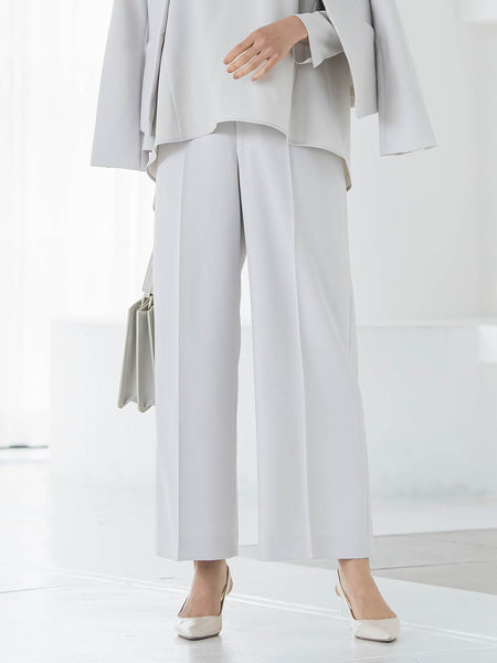 すっきりとしたストレートラインにセンタープレスを入れ、縦ラインを強調したきれいめシルエットです。