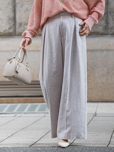 【デザイン】しなやかさと清涼感を兼ね備えたリネン混素材で仕立てた、エレガントな2タックワイドパンツ。フロントに施した2タックが立体的なボリュームを生み、たっぷりとしたワイドシルエットが動くたびに美しく揺れ、洗練された存在感を演出します。コンパクトなトップスを合わせてメリハリのある着こなしに、また同素材の短丈ジャケットとセットアップで今年らしいバランスを楽しむのもおすすめ。リネン特有のチクチク感を軽減するため、肌あたりのやわらかな裏地を採用。さらに夏場でも快適にお召しいただけるよう、清涼感のある素材を使用しています。後ろウエストはゴム仕様で、きちんと見えしながらもストレスフリーな穿き心地。長時間の着用や移動の多い日にも快適にお過ごしいただけます。【素材】リネンの風合いを持ち、ポリエステルが複合されていることによって耐久性がアップし、リネン特有のゴワつきが少なく清涼感が感じられる素材です。※リネン素材の特性上、ネップのようなものが多少見られますが生地不良ではございません。 ■モデル身長 165cm/着用サイズ 9号※画像の商品はサンプルとなりますので実際の商品と仕様、加工、サイズが若干異なる場合がございます。※お客様のモニター環境により実際のお色と多少異なる場合がございます。※撮影状況や光の当たり具合により、色合いが異なって見える場合がございます。関連ワード:LAUTREAMONT ロートレアモン レディース きれいめカジュアル 大人カジュアル ナチュラル きれいめ キレイめ 上品 シンプル ベーシック 通勤スタイル オフィスカジュアル キャリア オフィススタイル 新作 2026春夏 2026SS 春夏