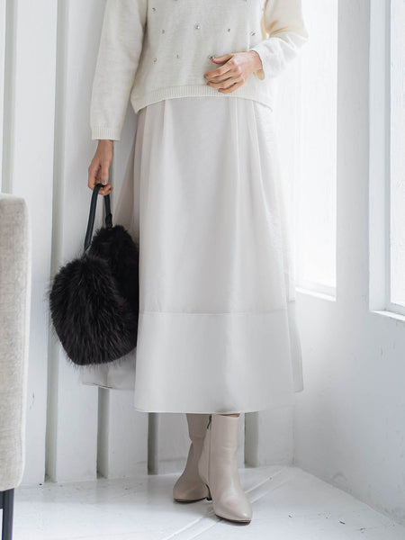 異なる質感の素材を切り替えて使用したスカート。