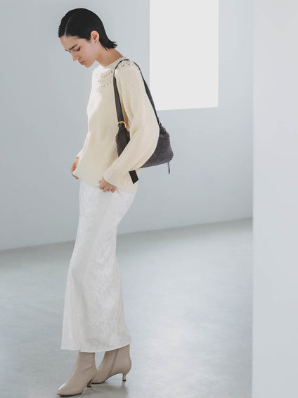 【デザイン】首まわりにノルディック柄のような透かし編みを施したニットプルオーバー。透かし部分にはループ状の糸を使用し、表情のある立体感を出しています。身頃は膨らみと軽さのある糸で編み上げ、リブ編み仕様にすることで縦のラインを強調。裾リブで腰位置に程よくとどまるシルエットになっており、スカートにもパンツにも合わせやすいバランスです。【素材】身頃部分は軽さと膨らみのある糸を使用し、毛羽が出にくくすっきりとした印象に。透かし編み部分には柔らかくループ状の糸を組み合わせ、ふんわりとしたウォーム感を加えています。【ディテール】・クルーネック・長袖・裾リブ仕様・ヨーク部分透かし編みデザイン----------------------------------------------------------------洗濯方法家庭洗濯:液温は30℃を限度とし、手洗いができる。自然乾燥:日陰の平干しがよい。アイロン:底面温度120℃を限度としてアイロン仕上げができる。ドライクリーニング:石油系溶剤による弱いドライクリーニングができる。----------------------------------------------------------------■モデル身長 165cm/着用サイズ 9号※商品タグに記載されたサイズはヌードサイズです。実際の商品のサイズは商品情報の実寸をご確認ください。※画像の商品はサンプルとなりますので実際の商品と仕様、加工、サイズが若干異なる場合がございます。※お客様のモニター環境により実際のお色と多少異なる場合がございます。※撮影状況や光の当たり具合により、色合いが異なって見える場合がございます。関連ワード:LAUTREAMONT ロートレアモン レディース きれいめカジュアル 大人カジュアル ナチュラル きれいめ キレイめ 上品 シンプル ベーシック 通勤スタイル オフィスカジュアル キャリア オフィススタイル 新作 2025秋冬 2025AW 秋冬 秋物 秋服