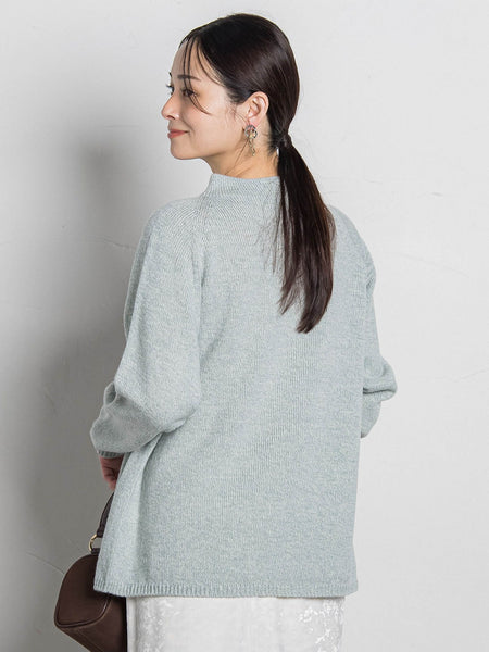 【デザイン】縫い目のないホールガーメント製法で仕立てた、上品でミニマルなニットプルオーバー。シンプルながらも、ふっくらと立体的なフォルムが美しく、着るだけでやわらかな印象に見せてくれます。程よくゆとりをもたせたシルエットと、首に沿うモックネックがバランス良く、パンツにもスカートにも合わせやすいデザイン。ラグランスリーブで肩まわりのラインが自然に落ち、リラックス感のある着心地です。【素材】アクリルをベースに、ウールとアンゴラをブレンドしたあたたかみのある糸を使用。ふんわりとした膨らみと柔らかい肌触りが魅力で、軽さと保温性を両立しています。毛羽立ちを抑えた上品な風合いで、カジュアルにもきれいめにもマッチする万能ニットです。