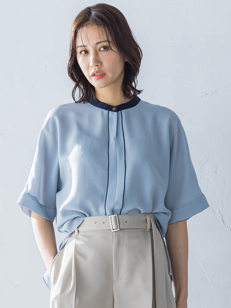 ジョーゼット配色ブラウス≪洗濯機で洗える≫