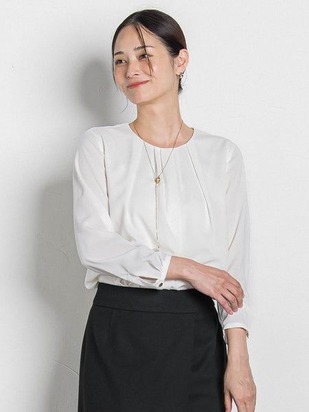 【デザイン】フロントにタックを入れ、すっきりと上品に見えるブラウス。シンプルながら立体感があり、1枚でも様になるデザインです。後ろ中央にスリット開きを配し、着脱しやすく軽やかな抜け感をプラスしました。【素材・機能】身頃には裏地を施しているため、白でも透けにくく安心して着用いただけます。袖は軽やかで動きやすく、長時間の着用でもストレスを感じにくいのが魅力。日常から通勤、オケージョンシーンまで幅広く活躍します。【サイズ展開】WEB限定で 13号サイズ(品番:3113-60712) を新たにラインナップ。より多くのお客様に、きれい見えと快適な着心地をお楽しみいただけます。【スタイリング】ジャケットやカーディガンのインナーに合わせやすく、スカートにもパンツにも対応できる万能デザイン。アクセサリーを添えれば華やかな印象になり、きちんとした場面からセレモニーシーンまで幅広く対応します。----------------------------------------------------------------洗濯方法家庭洗濯:液温は30℃を限度とし、洗濯機で非常に弱い洗濯ができる。自然乾燥:日陰の吊り干しがよい。アイロン:底面温度160℃を限度としてアイロン仕上げができる。ドライクリーニング:石油系溶剤による弱いドライクリーニングができる。----------------------------------------------------------------■モデル身長 165cm/着用サイズ 9号※商品タグに記載されたサイズはヌードサイズです。実際の商品のサイズは商品情報の実寸をご確認ください。※画像の商品はサンプルとなりますので実際の商品と仕様、加工、サイズが若干異なる場合がございます。※お客様のモニター環境により実際のお色と多少異なる場合がございます。※撮影状況や光の当たり具合により、色合いが異なって見える場合がございます。関連ワード:LAUTREAMONT ロートレアモン レディース きれいめカジュアル 大人カジュアル ナチュラル きれいめ キレイめ 上品 シンプル ベーシック 通勤スタイル オフィスカジュアル キャリア オフィススタイル 新作 2025秋冬 2025AW 秋冬 秋物 秋服