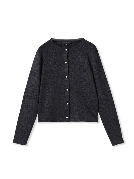 セットインスリーブでコンパクトに仕上げた、すっきりと体に沿うシルエットのカーディガン。