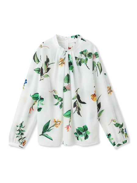 【デザイン】大きなボタニカルフラワーがインクジェットで鮮やかにプリントされたデシンブラウス。低めのスタンドでフロントにねじりディテールとタックを入れて、女性らしくエレガントに仕上げています。後ろネックにコンシールファスナー仕様にしています。控えめなドレープとタックで柄を際立たせています。シルキーな素材なので、ジャケットのインナーとしても使っていただけます。セットインスリーブなので、きれいめですっきりとしたシルエットにしています。【素材】多色を使い、繊細に鮮やかに表現したプリントです。京都のアトリエで作られた、デジタルプリントで色使いが特徴です。しなやかでソフトな風合いと優しいふくらみを持った上質な素材です。パウダリーなタッチで着心地も良く、美しいシルエットを生み出します。----------------------------------------------------------------洗濯方法家庭洗濯:液温は30℃を限度とし、洗濯機で非常に弱い洗濯ができる。自然乾燥:日陰の吊り干しがよい。アイロン:底面温度160℃を限度としてアイロン仕上げができる。ドライクリーニング:石油系溶剤による弱いドライクリーニングができる。----------------------------------------------------------------※商品タグに記載されたサイズはヌードサイズです。実際の商品のサイズは商品情報の実寸をご確認ください。※画像の商品はサンプルとなりますので実際の商品と仕様、加工、サイズが若干異なる場合がございます。※お客様のモニター環境により実際のお色と多少異なる場合がございます。※撮影状況や光の当たり具合により、色合いが異なって見える場合がございます。関連ワード:LAUTREAMONT DE CLASSE ロートレアモンデュクラス レディース きれいめカジュアル 大人カジュアル ナチュラル きれいめ キレイめ 上品 シンプル ベーシック 通勤スタイル オフィスカジュアル キャリア オフィススタイル 新作 2025春夏 2025SS 春夏 夏物 夏服
