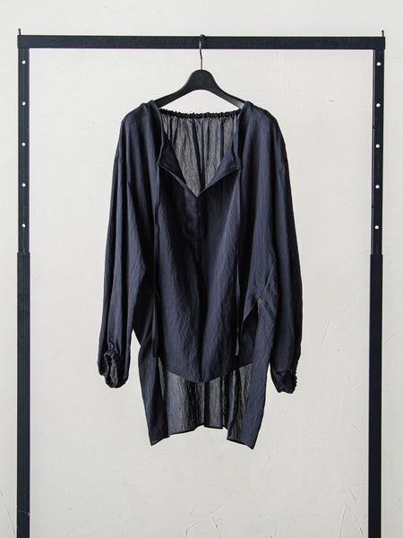 【Point】バックサイドにリボンをあしらった、ミニマルなラウンドネックブラウス。袖のボリュームと、フロントとバックのレングス差がポイント。【Fabric】上質な微光沢と程よいシアー感がセンシュアルなマテリアル。シルクブレンドによる滑らかなタッチが心地良く、サラッとした肌離れの良さが夏に最適。タンブラー加工によるナチュラルなシボがリラクシーな印象。----------------------------------洗濯方法家庭洗濯:液温は40℃を限度とし、手洗いが出来る。自然乾燥:日蔭の吊り干しがよい。アイロン:底面温度110℃を限度としてアイロン仕上げができる。ドライクリーニング:石油系溶剤による弱いドライクリーニングができる。----------------------------------※商品タグに記載されたサイズはヌードサイズです。実際の商品のサイズは商品情報の実寸をご確認ください。※画像の商品はサンプルとなりますので実際の商品と仕様、加工、サイズが若干異なる場合がございます。※お客様のモニター環境により実際のお色と多少異なる場合がございます。※撮影状況や光の当たり具合により、色合いが異なって見える場合がございます。関連ワード:ESSEN.LAUTREAMONT エッセン ロートレアモン 2024春夏 初夏 夏 20度以上におすすめ ブラウス レーヨン ナイロン シルク クルーネック 無地 長袖 リボン