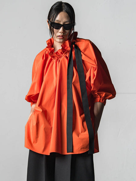 - ネックギャザーリボンブラウス