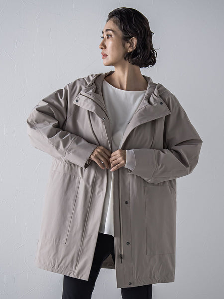 ウェストにドローストリングを効かせた、シルエット自在のマウンテンパーカー。