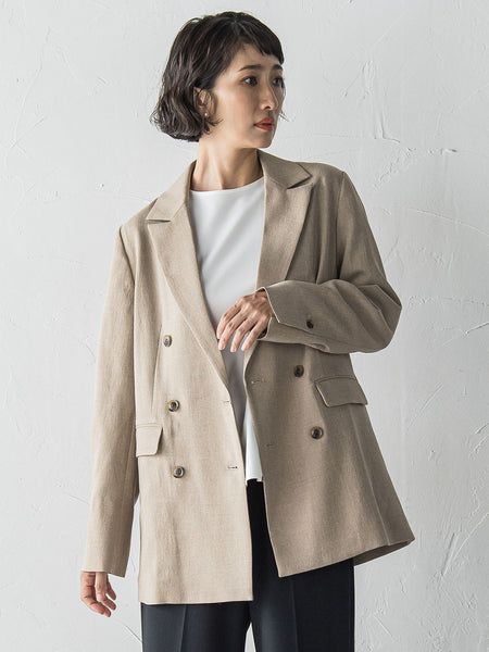 【デザインの特徴】軽く膨らみのあるウール調合繊で端正に仕立てたブレザー。ややゆとりのあるボクシーなサイズ感で、今っぽい抜け感も演出できる一着。裏地付きで、インナー次第で長く着用でき、肌寒い時期のアウターとしてもおすすめ。女性らしいアイテムと掛け合わせたり、デニムではずしたり、様々なコーデでお楽しみいただける大人の羽織りアイテムです。【機能性】◆Washableご自宅での手洗いが可能◆防シワ性◆ストレッチ性【素材の特徴】トップ糸のようなミックスカラー感と表情のある太番手感を持ち合わせたストレッチ性に優れたシャーク素材になります。クリアな表面感とドライなタッチ、イージーケア性が特徴の素材となっております。----------------------------------------------------------------洗濯方法家庭洗濯:液温は40℃を限度とし、手洗いができる。自然乾燥:日陰の吊り干しがよい。アイロン:底面温度120℃を限度としてアイロン仕上げができる。ドライクリーニング:石油系溶剤による弱いドライクリーニングができる。----------------------------------------------------------------※画像の商品はサンプルとなりますので実際の商品と仕様、加工、サイズが若干異なる場合がございます。※お客様のモニター環境により実際のお色と多少異なる場合がございます。※撮影状況や光の当たり具合により、色合いが異なって見える場合がございます。※商品タグに記載されたサイズはヌードサイズです。実際の商品のサイズは商品情報の実寸をご確認ください。関連ワード:la.f… ラ エフ レディース 新作 大人コーデ シンプル フォーマル モード マニッシュ 2025秋冬 2025AW 秋冬 秋物 秋服