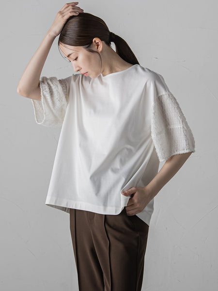 袖にシアージャガードを使用した華やかなカットソー。