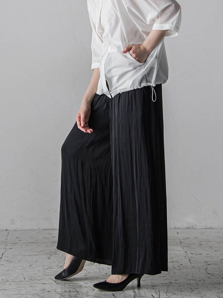【デザインの特徴】パウダータッチで優しいタッチが特徴の割繊素材を使用したギャザーワイドパンツ。プリーツ見えする細やかなギャザーは、ラフ感と品の良さが両立する大人カジュアルを印象付けます。ウェストはオールゴムのラクチン仕様で、軽やかな薄手素材を使用しているので、長いシーズンお楽しみいただけます。----------------------------------洗濯方法家庭洗濯:液温は30℃を限度とし、洗濯機で非常に弱い洗濯ができる。自然乾燥:日蔭の吊り干しがよい。アイロン:底面温度150℃を限度としてアイロン仕上げができる。ドライクリーニング:石油系溶剤による弱いドライクリーニングができる。----------------------------------■モデル1 身長 173cm/着用サイズ 9号■モデル2 身長 171cm/着用サイズ 9号※画像の商品はサンプルとなりますので実際の商品と仕様、加工、サイズが若干異なる場合がございます。※お客様のモニター環境により実際のお色と多少異なる場合がございます。※撮影状況や光の当たり具合により、色合いが異なって見える場合がございます。※商品タグに記載されたサイズはヌードサイズです。実際の商品のサイズは商品情報の実寸をご確認ください。関連ワード:la.f… ラ エフ 2024秋冬 2024AW 秋 秋服 シンプル フォーマル モード マニッシュ