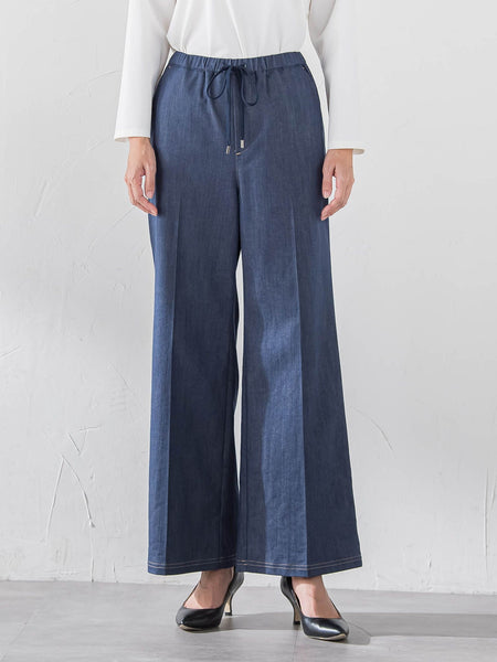 【デザインの特徴】色落ちしにくい反応染料を使用した、きれいめ仕立てのワイドデニム。上品な発色とハリのある風合いで、大人らしいクリーンな印象に。脚のラインをまっすぐ見せるシルエットで、カジュアルにもきれいめにも合わせやすい万能ボトムです。【素材の特徴】◆Easy Careご自宅でのお手入れが簡単【素材の特徴】綿混のセルロース使いのデニムになります。程よい落ち感がありきれいな見え感が特徴の色落ちしにくいデニム素材となっております。やわらかなタッチとストレッチ性で快適に着用していただけます。----------------------------------------------------------------洗濯方法家庭洗濯:液温は30℃を限度とし、洗濯機で非常に弱い洗濯ができる。自然乾燥:日陰の吊り干しがよい。アイロン:底面温度120℃を限度としてアイロン仕上げができる。ドライクリーニング:石油系溶剤による弱いドライクリーニングができる。----------------------------------------------------------------■モデル身長 164cm/着用サイズ M※画像の商品はサンプルとなりますので実際の商品と仕様、加工、サイズが若干異なる場合がございます。※お客様のモニター環境により実際のお色と多少異なる場合がございます。※撮影状況や光の当たり具合により、色合いが異なって見える場合がございます。※商品タグに記載されたサイズはヌードサイズです。実際の商品のサイズは商品情報の実寸をご確認ください。関連ワード:la.f… ラ エフ レディース 新作 大人コーデ シンプル フォーマル モード マニッシュ 2025秋冬 2025AW 秋冬 秋物 秋服