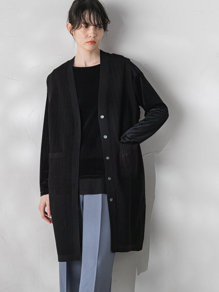 今シーズンらしいメッシュ組織で編みたてたロングジレ。
