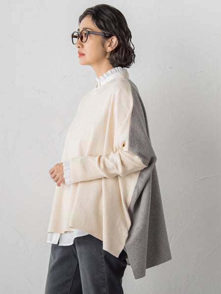 【WEB限定】”前後で印象が変わる”ドルマンバイカラーニット