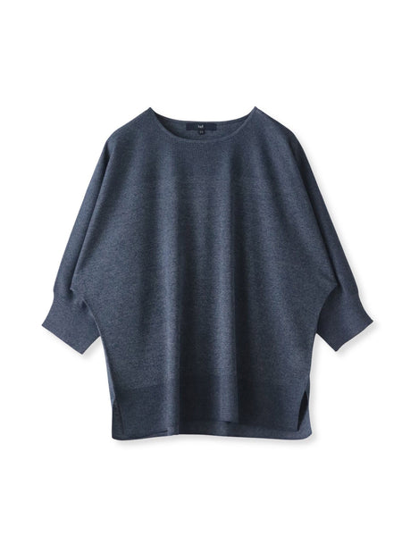 肘下丈のドルマンスリーブで肌離れの良いシルエットで春から真夏まで快適に着ていただけます。ニットならではの編地切替を胸元のアクセントにしています。
