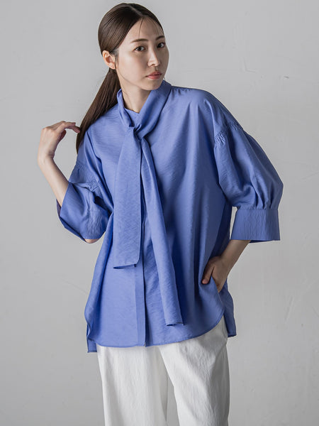 共生地のスカーフでボウタイブラウス風にも着ていただけます。