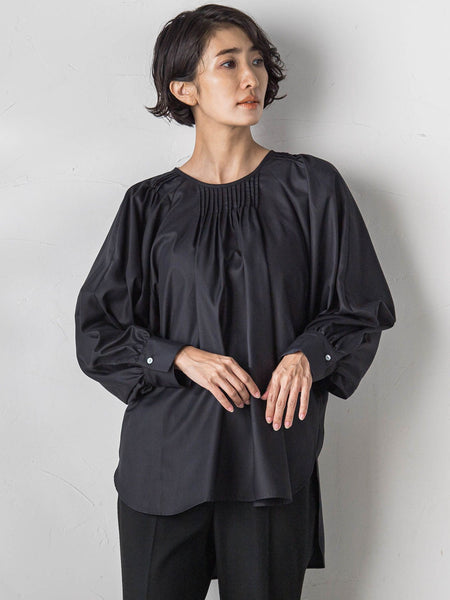 【デザインの特徴】ピンタックをたっぷりあしらったブラウス。一枚できまるふわりとしたシルエットに、レイヤードしても使いやすいゆったりと広がるボリュームスリーブで、マルチに使えるデザイン性。【素材の特徴】フルダルのスパンを起毛し、抑えをかけて光沢を出しました。決してふかつくことはなく、サラッとした梳毛ライクの滑らかな手触りでいて、イージーケア。優しい肌触りの素材となっております。----------------------------------洗濯方法家庭洗濯:液温は40℃を限度とし、洗濯機で弱い洗濯ができる。自然乾燥:日蔭の吊り干しがよい。アイロン:底面温度150℃を限度としてアイロン仕上げができる。ドライクリーニング:石油系溶剤による弱いドライクリーニングができる。----------------------------------■モデル1 身長 173cm/着用サイズ 9号■モデル2 身長 171cm/着用サイズ 9号※画像の商品はサンプルとなりますので実際の商品と仕様、加工、サイズが若干異なる場合がございます。※お客様のモニター環境により実際のお色と多少異なる場合がございます。※撮影状況や光の当たり具合により、色合いが異なって見える場合がございます。※商品タグに記載されたサイズはヌードサイズです。実際の商品のサイズは商品情報の実寸をご確認ください。関連ワード:la.f… ラ エフ 2024秋冬 2024AW 秋 秋服 ブラウス ポリエステル クルーネック 無地 長袖 シンプル フォーマル モード マニッシュ