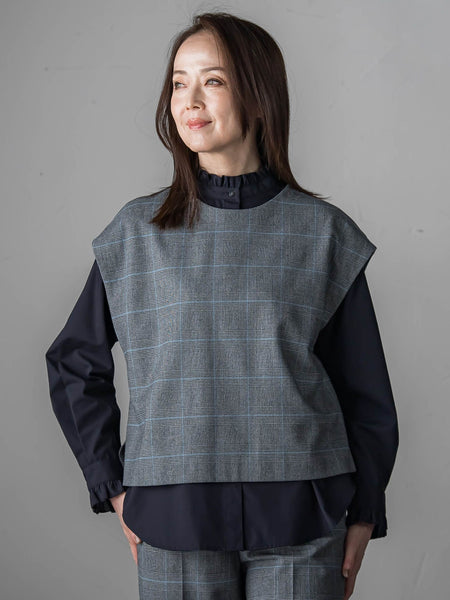 【デザインの特徴】前後どちらでも着用できる2way仕様のクロップドジレ。プルオーバーとしてシンプルに、または前を釦あきにして羽織り感覚で使えるデザインです。フレンチスリーブで肩まわりはゆったりとしつつ、全体は程よいリラックス感を持たせたシルエットに仕上げました。丈はクロップド丈で、ハイウエストボトムとも相性抜群。トップスとのレイヤードスタイルに軽やかさを添え、大人のカジュアルにさりげないアクセントを加えます。季節の変わり目に重宝する万能アイテムです。【機能性】◆Easy Careご自宅でのお手入れが簡単【素材の特徴】ラエフブランドオリジナルの織り、整理ともに尾州産地で仕上げた着用感抜群の2WAYストレッチ素材になります。タテヨコ糸ともに通常より高密度の規格で織り上げ、仕立て映えの良さと着用時の安心感を生み出し、整理加工においても生地を縮ませ通常の2WAYに比べより人の動きに呼応すべくタテ伸び重視で仕上げたハイパワーストレッチになります。こだわりの両面起毛により、ソフトで肌触りの良い素材感を実現。今シーズンのシロは経糸、緯糸ともにフルダルの糸を使用し従来よりもより透けにくい素材となっております。洗濯機で洗えるイージーケアも嬉しいポイント。また生地の表裏、両面にマイクロピーチ加工を施し、風合いに温かみがあり、非常に肌触りのよい製品に仕上がっています。----------------------------------------------------------------洗濯方法家庭洗濯:液温は30℃を限度とし、洗濯機で非常に弱い洗濯ができる。自然乾燥:日陰の吊り干しがよい。アイロン:底面温度120℃を限度としてアイロン仕上げができる。ドライクリーニング:石油系溶剤による弱いドライクリーニングができる。----------------------------------------------------------------※画像の商品はサンプルとなりますので実際の商品と仕様、加工、サイズが若干異なる場合がございます。※お客様のモニター環境により実際のお色と多少異なる場合がございます。※撮影状況や光の当たり具合により、色合いが異なって見える場合がございます。※商品タグに記載されたサイズはヌードサイズです。実際の商品のサイズは商品情報の実寸をご確認ください。関連ワード:la.f… ラ エフ レディース 新作 大人コーデ シンプル フォーマル モード マニッシュ 2025秋冬 2025AW 秋冬 秋物 秋服