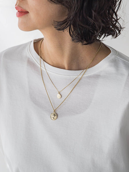 繊細なコインチャームが胸元で揺れる、重ねづけ風ネックレス。シンプルな装いにほどよい存在感をプラス。日常に寄り添う、さりげないおしゃれアイテムです。