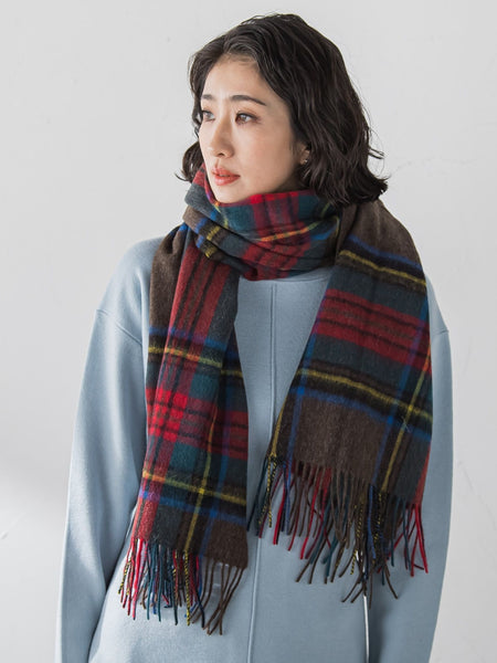 【デザインの特徴】巻くだけで冬ムード高まるふんわりあたたかい保温性と柔らかな肌触りが両立したチェックマフラー。沈みがちな秋冬のコーディネートに華を添える、キャッチーなカラー展開でご用意しました。プレゼントにもおすすめです。