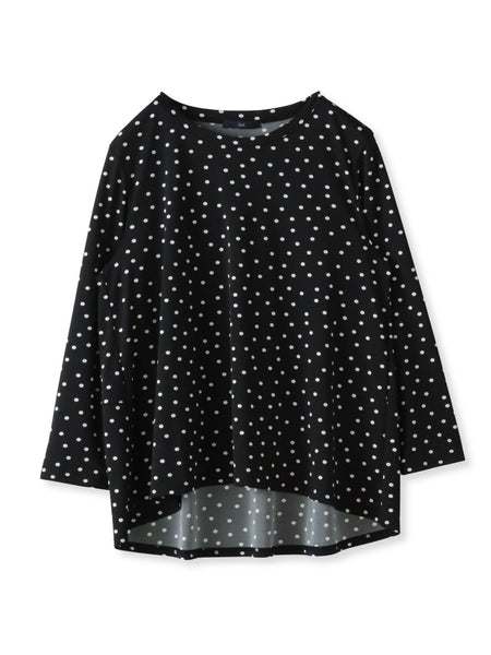 上品な落ち感とさらりとした肌触りが魅力の強撚スムースカットソー。強撚糸ならではのドライタッチで、汗ばむ季節も快適にお召しいただけます。程よくゆとりのあるシルエットと前後差のあるヘムラインが、気になる腰まわりをさりげなくカバーしながら抜け感をプラス。シンプルながらも一枚でサマになるデザインに仕上げています。きれいめにもカジュアルにも合わせやすく、パンツにもスカートにも好相性。デイリーからお仕事シーンまで幅広く活躍する、頼れる一着です。